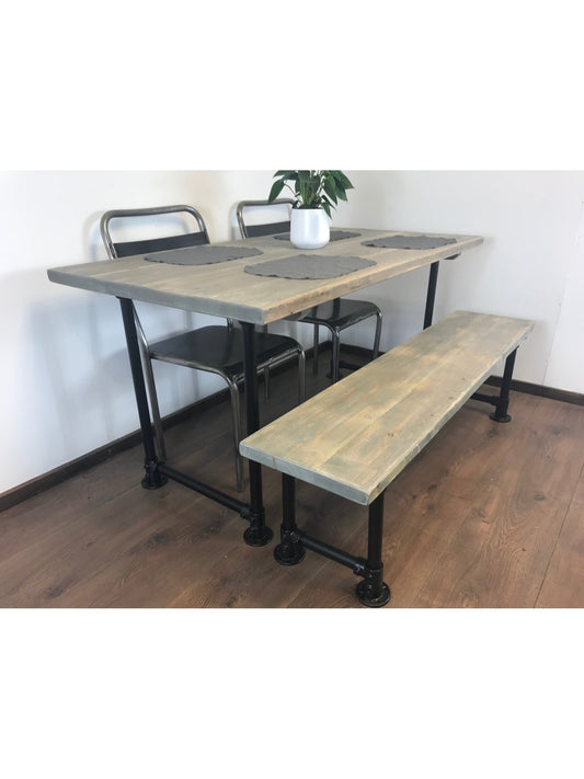Dining table and bench set, choice of 5 wood finishes, Black industrial style legs, Rustic sustainable wood, rustic dining table THE FIRTREE