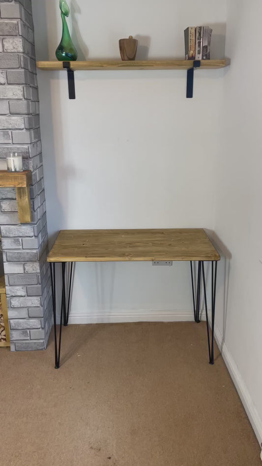 Contemporary Office Desk with Hairpin Legs. Planed timber top in 5 wood colours