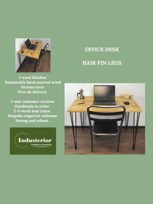 Rustic office Desk with hair pin legs, 5 choices of rustic wood with Industrial style legs, solid wood office desk, sustainable timber.