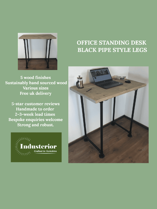 Standing Home Desk with black pipe legs in 5 wood colours. Industrial style standing Desk, home office. Rustic standing desk
