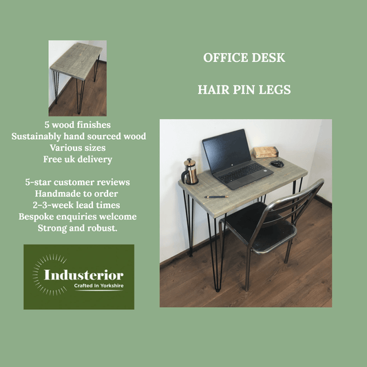 Small Rustic office Desk with hair pin legs- 5 choices of wood finish - Industrial style - solid wood office desk - sustainable timber.