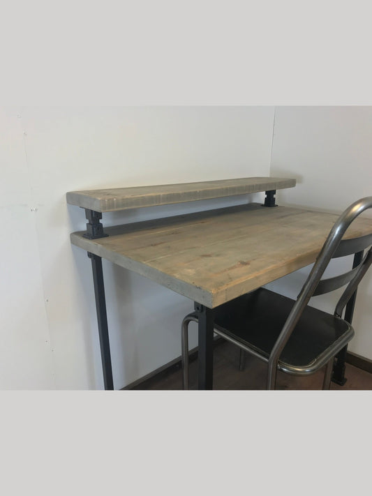 Home office desk with black square adjustable legs. with monitor shelf. 5 rustic wood colours. Industrial style. Simple Allan key installation, The Axlewood